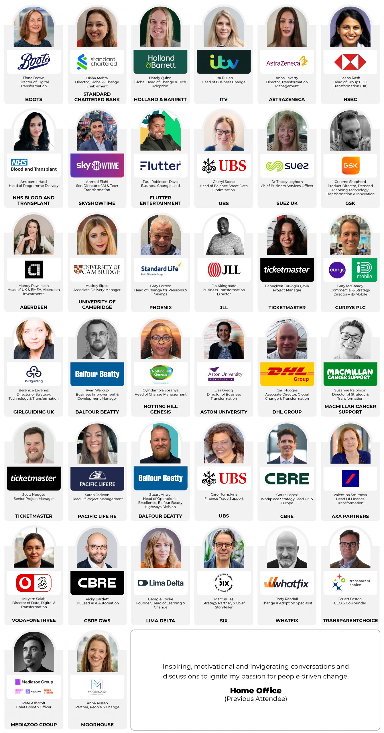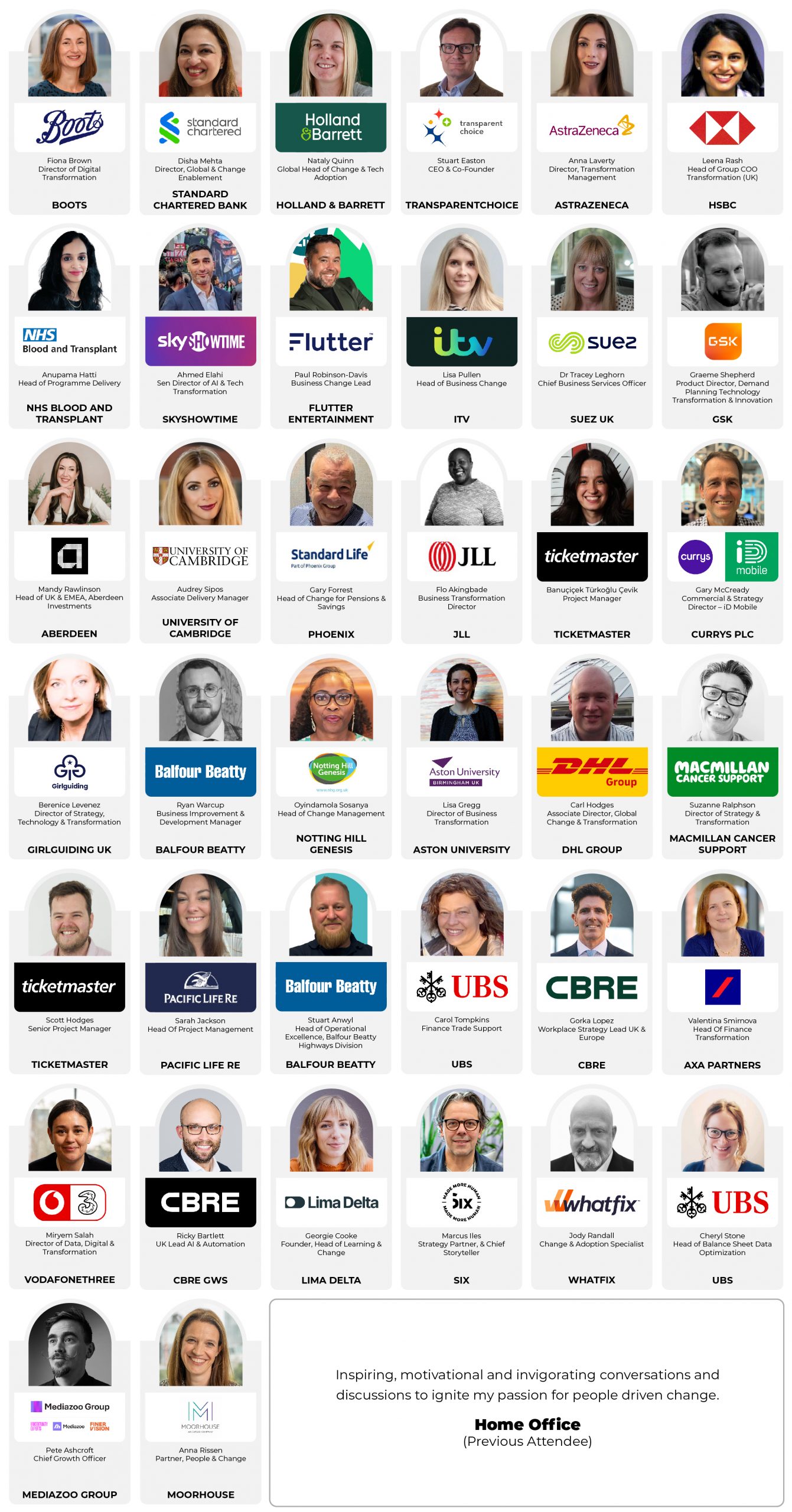 - Gain a comprehensive, one-day change and transformation immersion combining strategic insights, practical workshops, and high-value networking